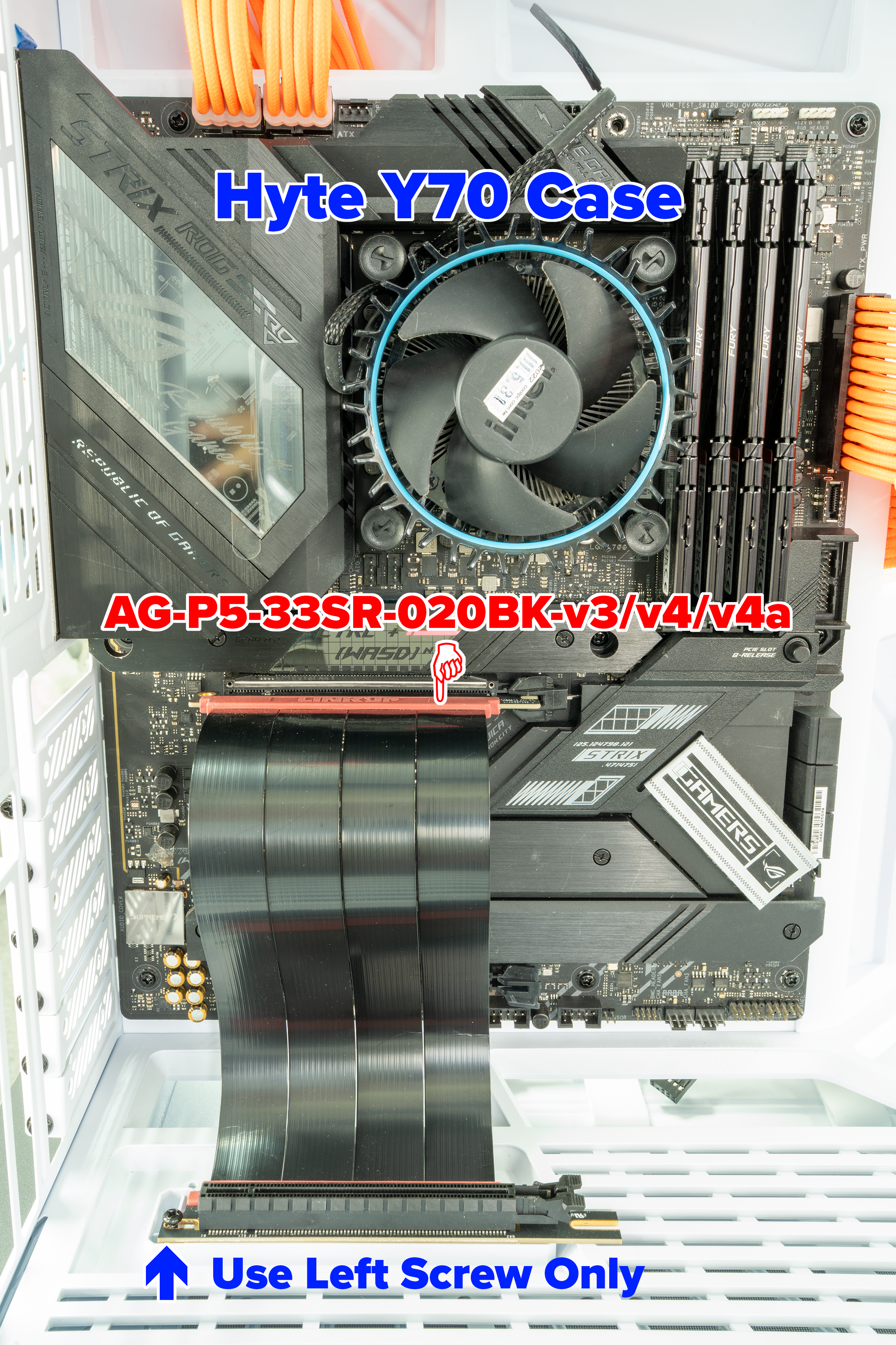 | HYTE | Y60 / Y70 | AG-P5-33SR-020BK-v3/v4 | Installation Photo | x - Only Left Screw Is Used. | |