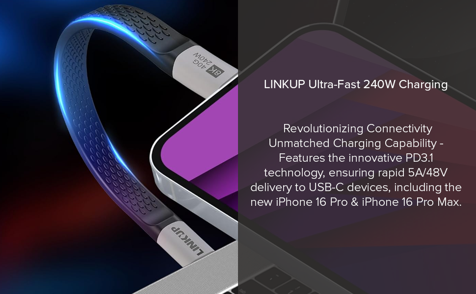 - Unrivaled 240W Ultra-Fast Charging: Groundbreaking PD3.1 technology delivers 5A/48V to USB-C devices, with backward compatibility for 140W, 100W, 60W, and USB 3.2 Gen 2 2x2, Gen 2, Gen 1, USB 3.1 10G devices.